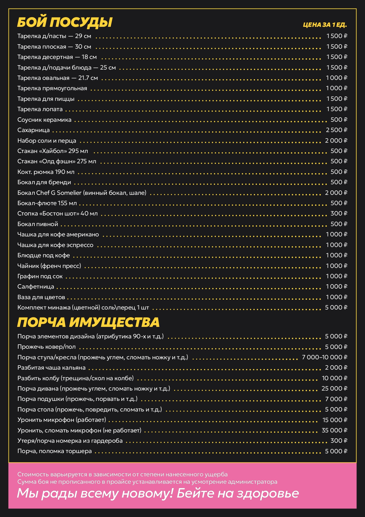 Меню разрушителей